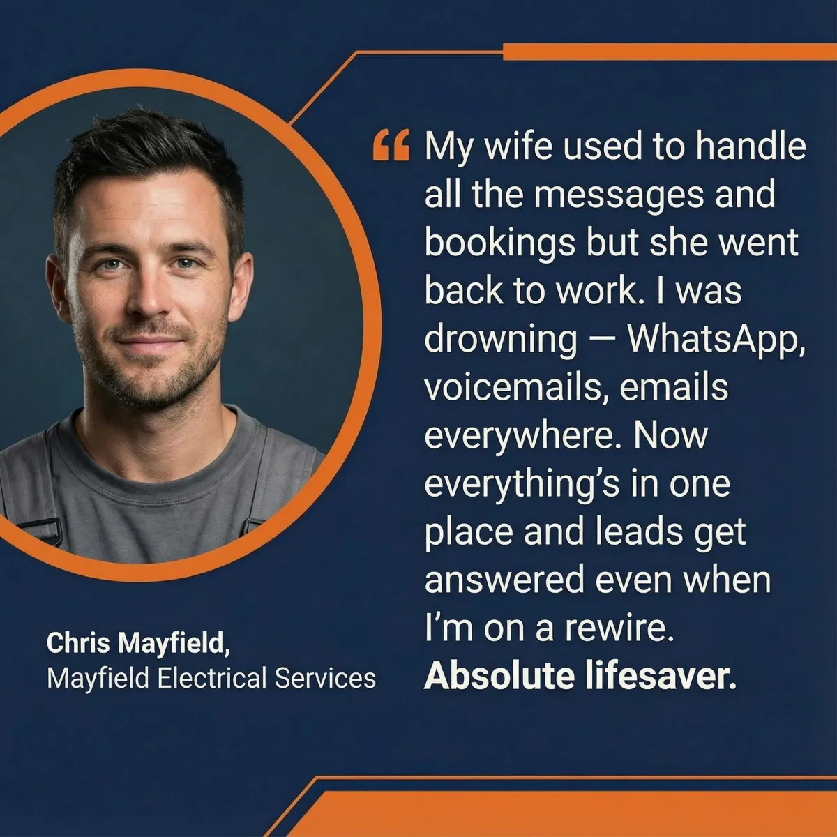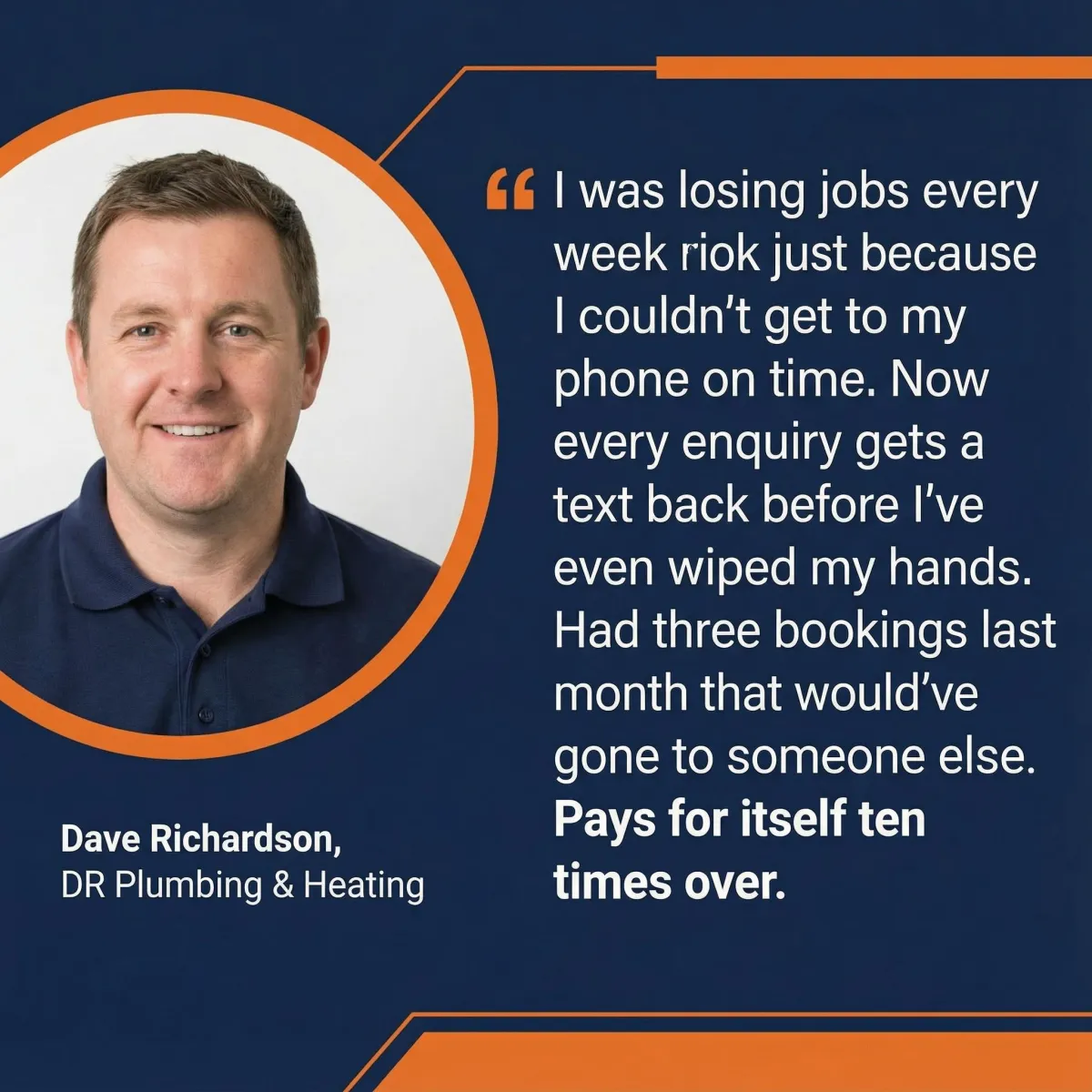 Get a website that texts your leads back instantly—even when you're knee-deep in a job. Done for you. £297/month.
